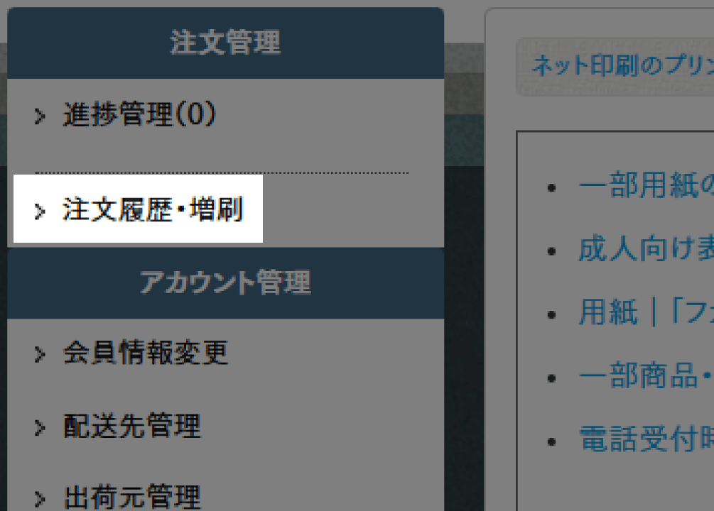 ①マイページの注文履歴・増刷ページへアクセス