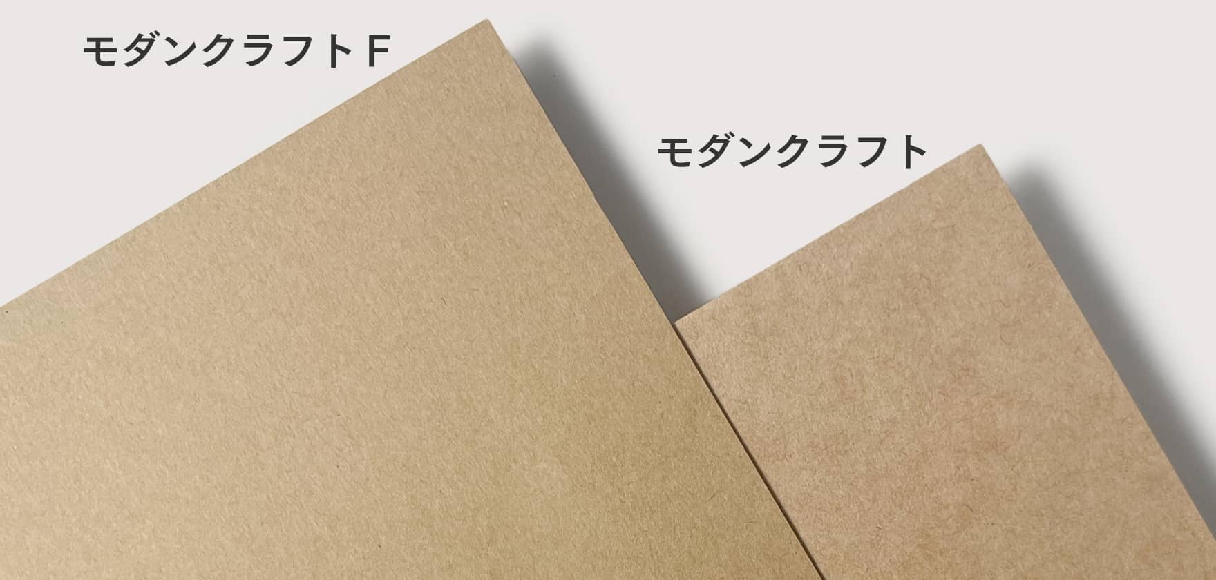 移行品のモダンクラフトFは、クラフト調のナチュラルな風合いや厚み(連量)は従来品同様になります。ただし、紙色がやや濃く見える場合があります。