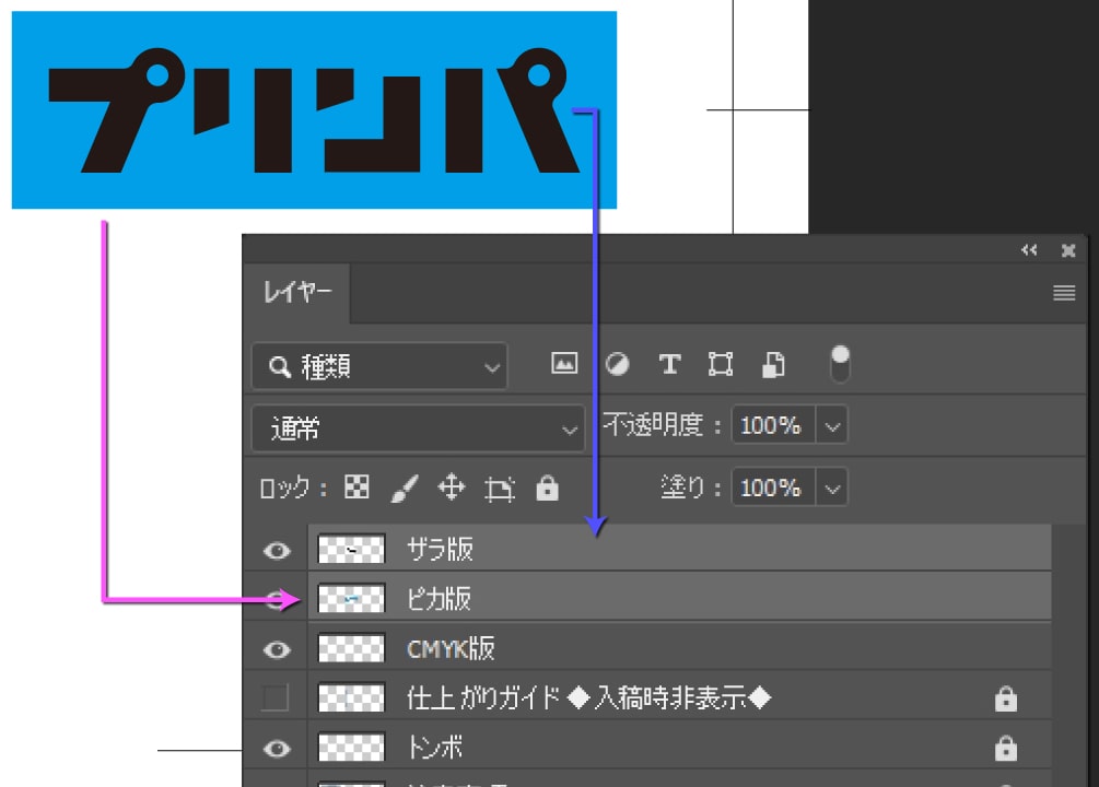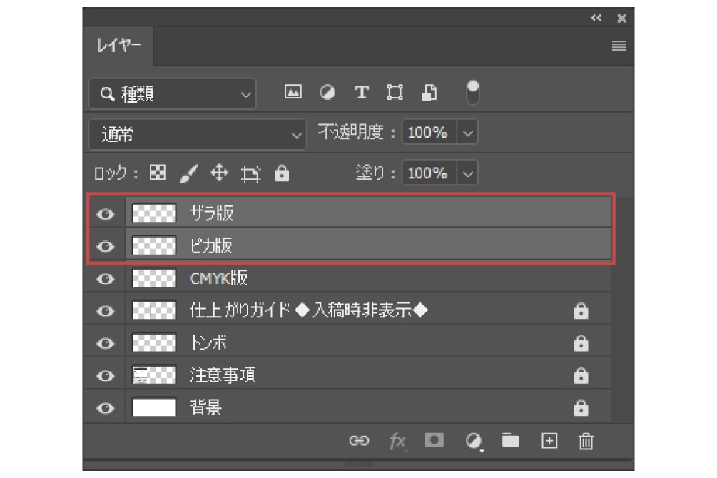 ※ザラ(ツヤ消し)のみをご希望の場合は、「ピカ版」の作成は不要ですデータ保存時は、「ザラ.pdf」「ピカ.pdf」など、それぞれデータ内容が分かるように保存してください。